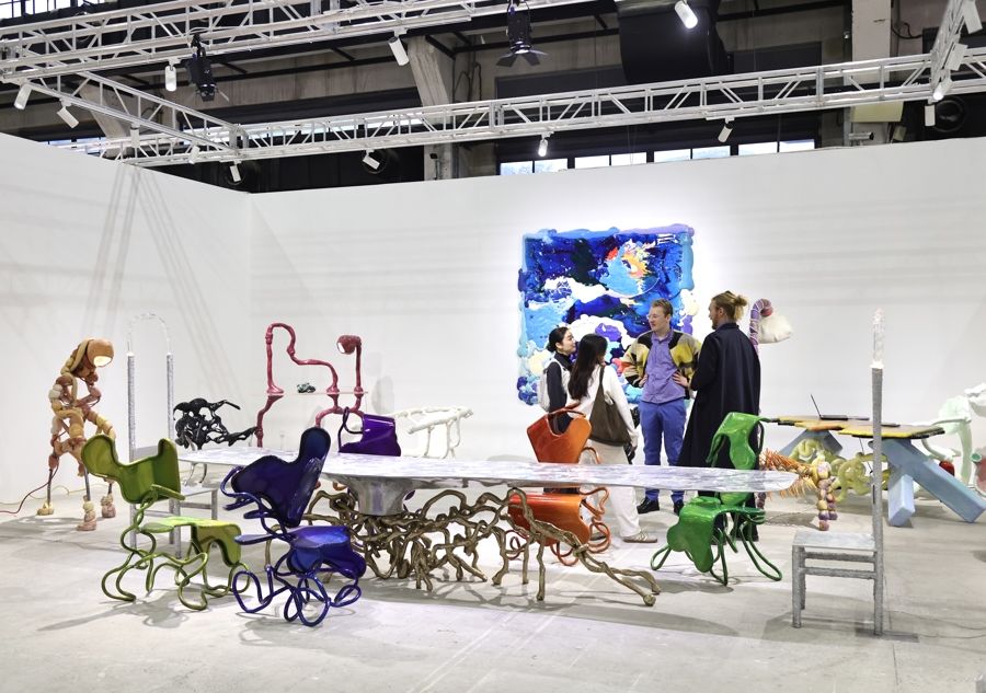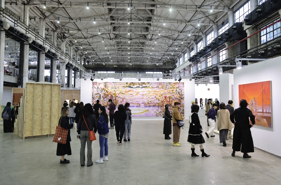 除胡项城之外,劳瑞斯·切克尼(Loris Cecchini)、陈嫣冉、陈栋帆、D.LAB DANCE、井士剑、邱岸雄、托比亚斯·雷贝格(Tobias Rehberger)、唐艺窈、托米·托伊亚(Tommi Toija)、周力等40位海内外艺术家进行了“非展位”创作。其中,劳瑞斯·切克尼热衷于将科技与自然结合重塑“表面”的理想维度,在西岸艺术中心展示其经典创作《碧波震动系列》的纯白人造景观“液化墙”;林奥劼的2025年充气式雕塑新作《Super me》则将悬浮在西岸穹顶艺术中心,以艺术家自身为创作原型,延续其幽默轻松的创作语言,“一个大大的我”给展会的每一位参与者“大大的赞!”