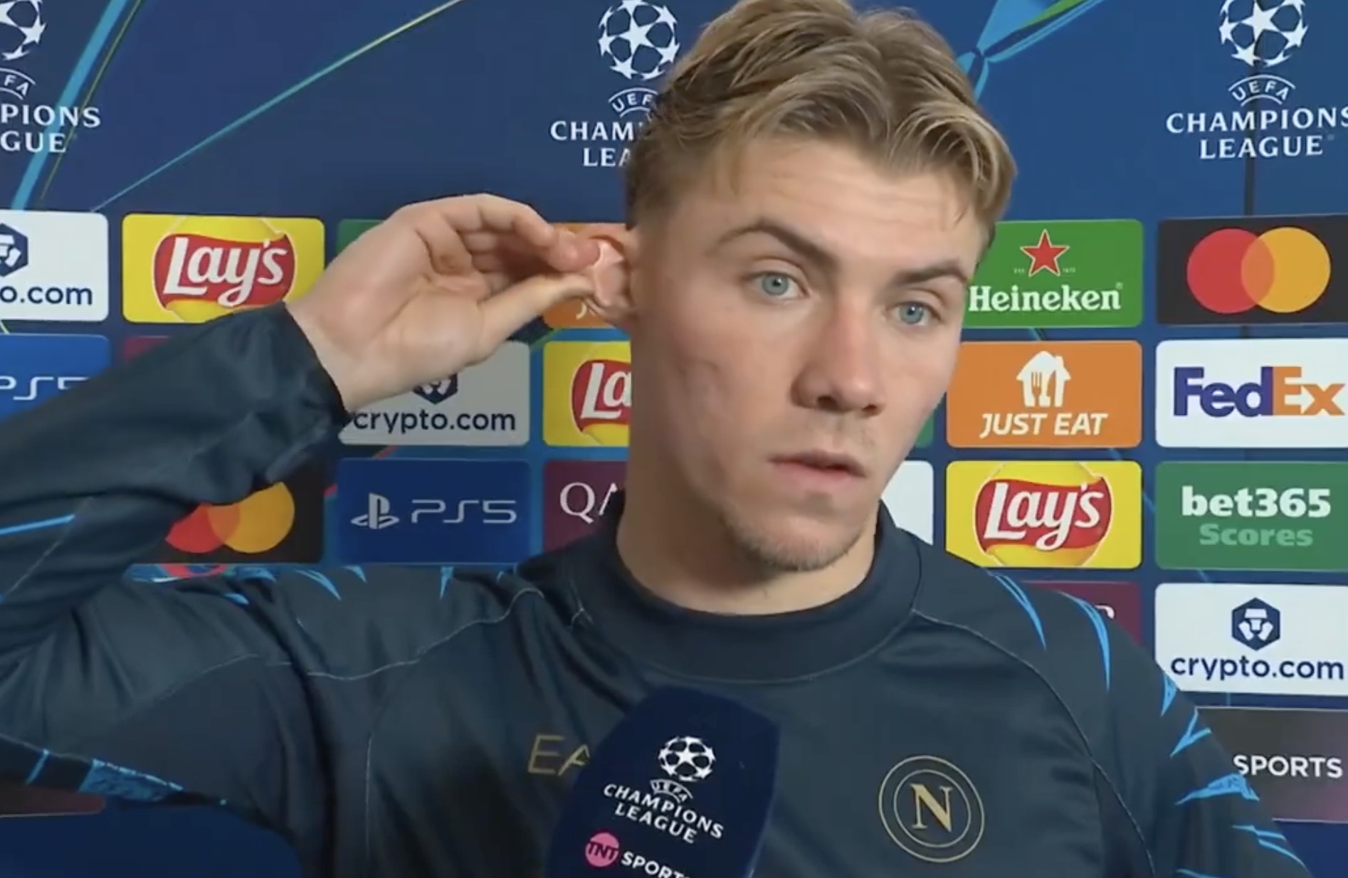 欧冠主场2-3不敌切尔西后财米网,此役打入一球的那不勒斯前锋霍伊伦接受了TNT体育的采访。